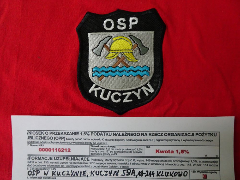Zachęcamy do przekazania 1,5% z podatku dla OSP w Kuczynie.